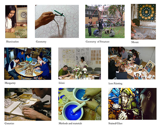 Through learning the practical skills of these arts and crafts and simultaneously learning their significance as part of the universal language underpinning the sacred and traditional arts of the world, the student is offered the opportunity to participate in the contemplative nature of these arts, and to realise, through activity rather than observation, that the subtle patterns and forms they interact with transcend the purely decorative realm and embody a more profound order of beauty.