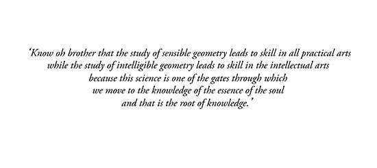 I would also like to stress the importance of this discipline of geometry by quoting from the Rasail of Ikhwan el Safa - who were fundamental in the transfer of platonic thought to the Islamic world in the 11th century: